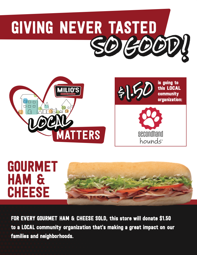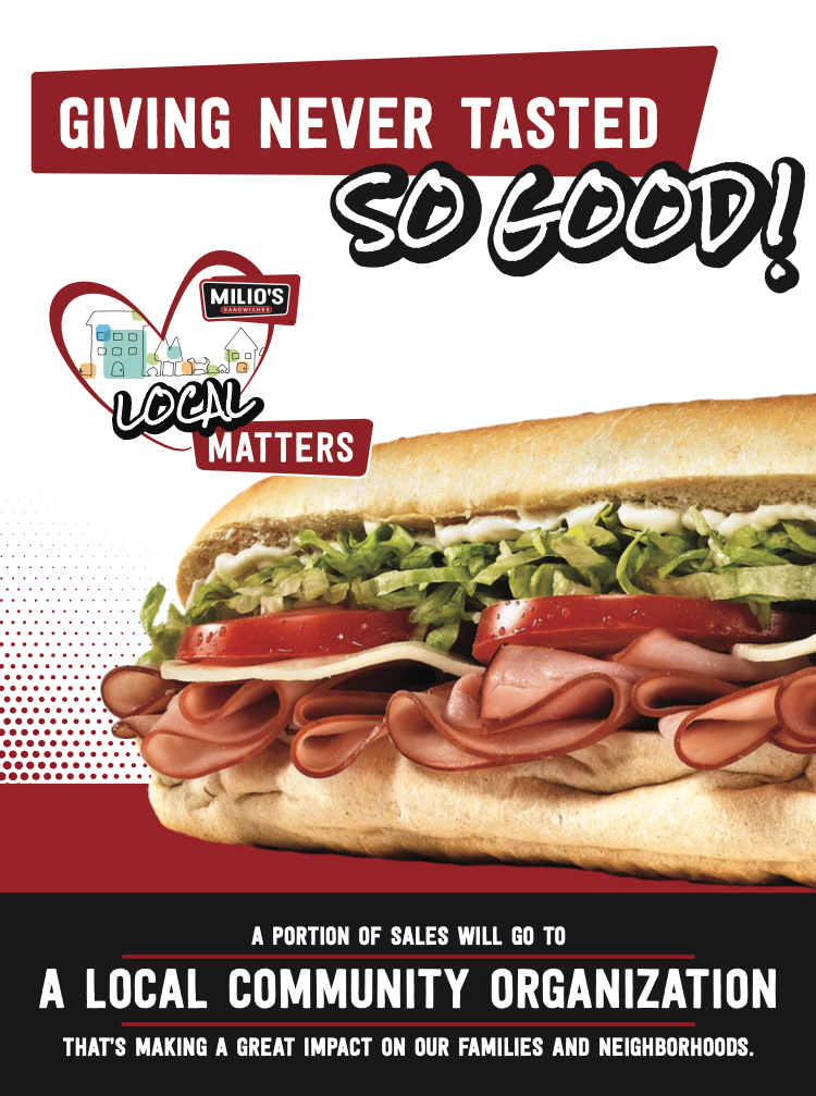 - In its first year (June 2021 to May 2022), Milio’s Sandwiches has donated nearly $100,000 to food banks, children’s causes, humane societies, veteran’s programs, and shelters for domestic abuse victims.